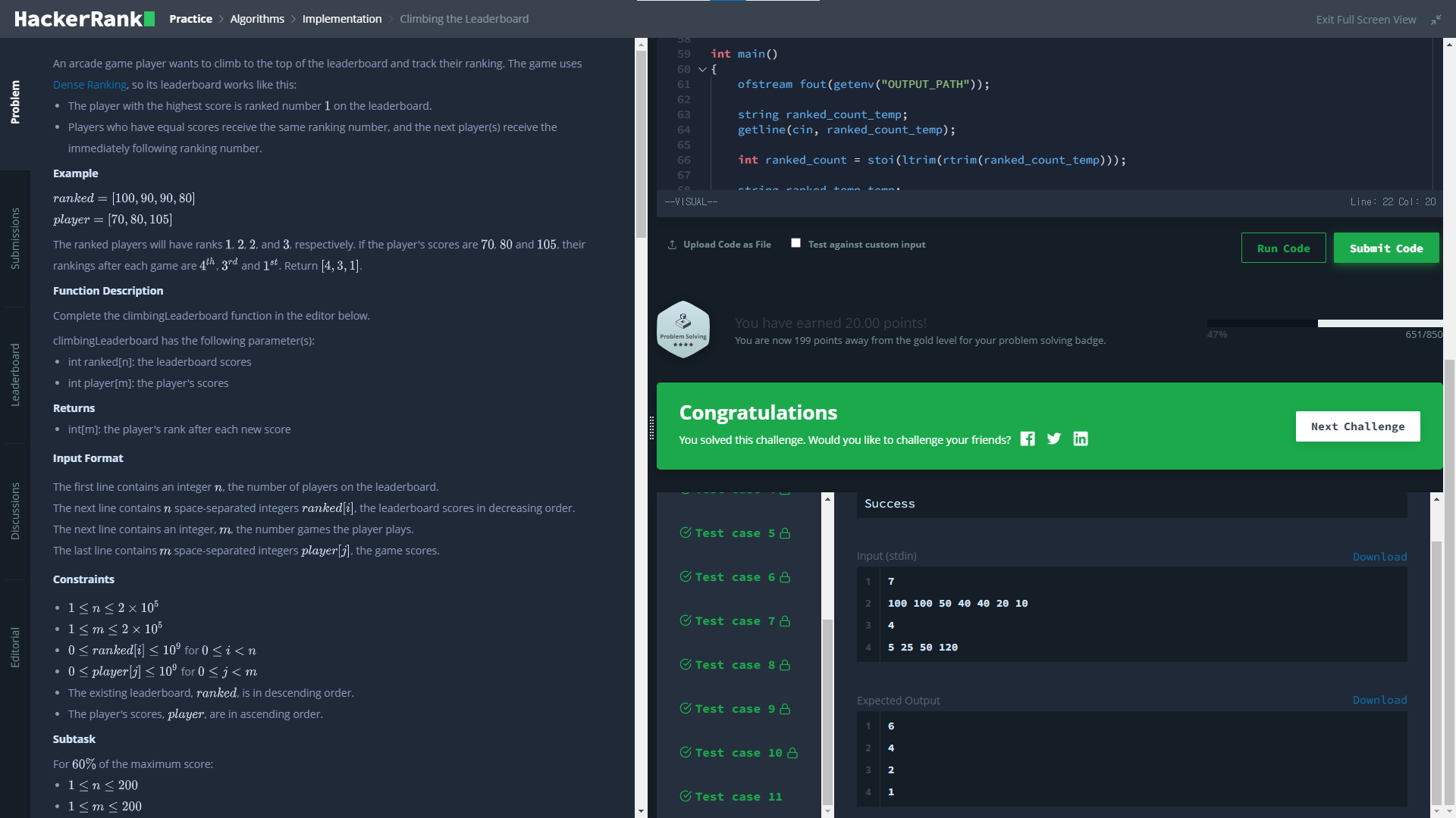 Climbing the Leaderboard | HackerRank